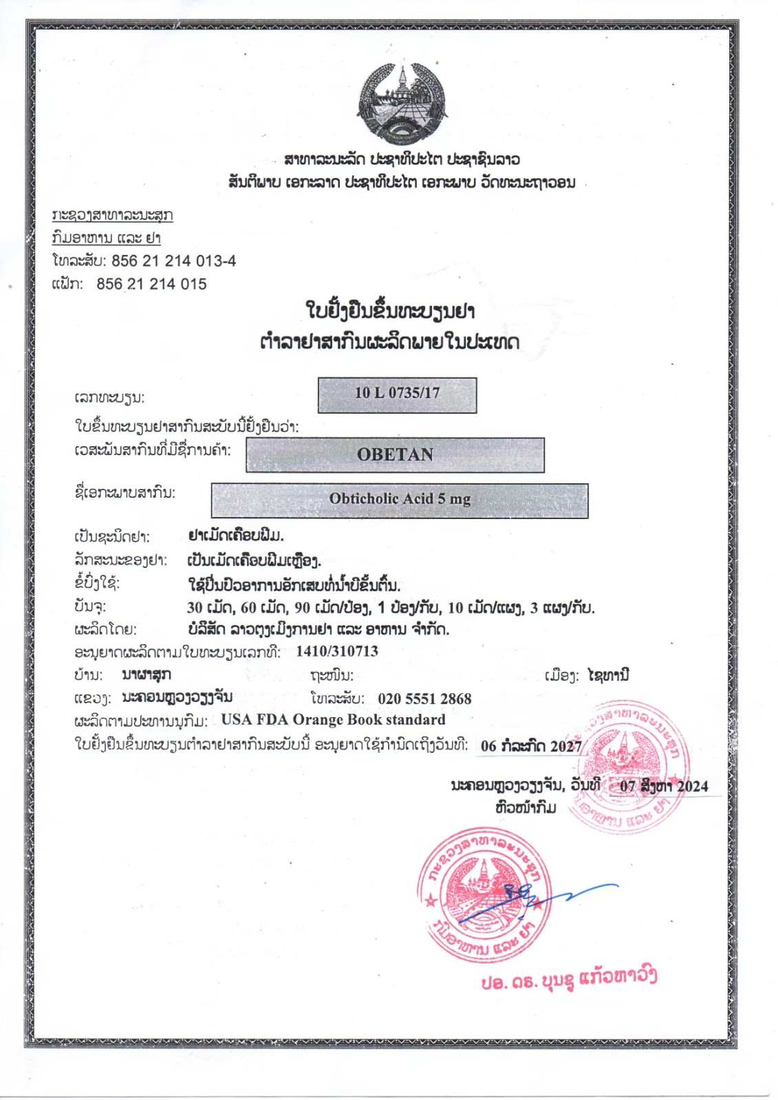 Obetan,品名:奥贝胆酸,通用名:Obeticholic acid。