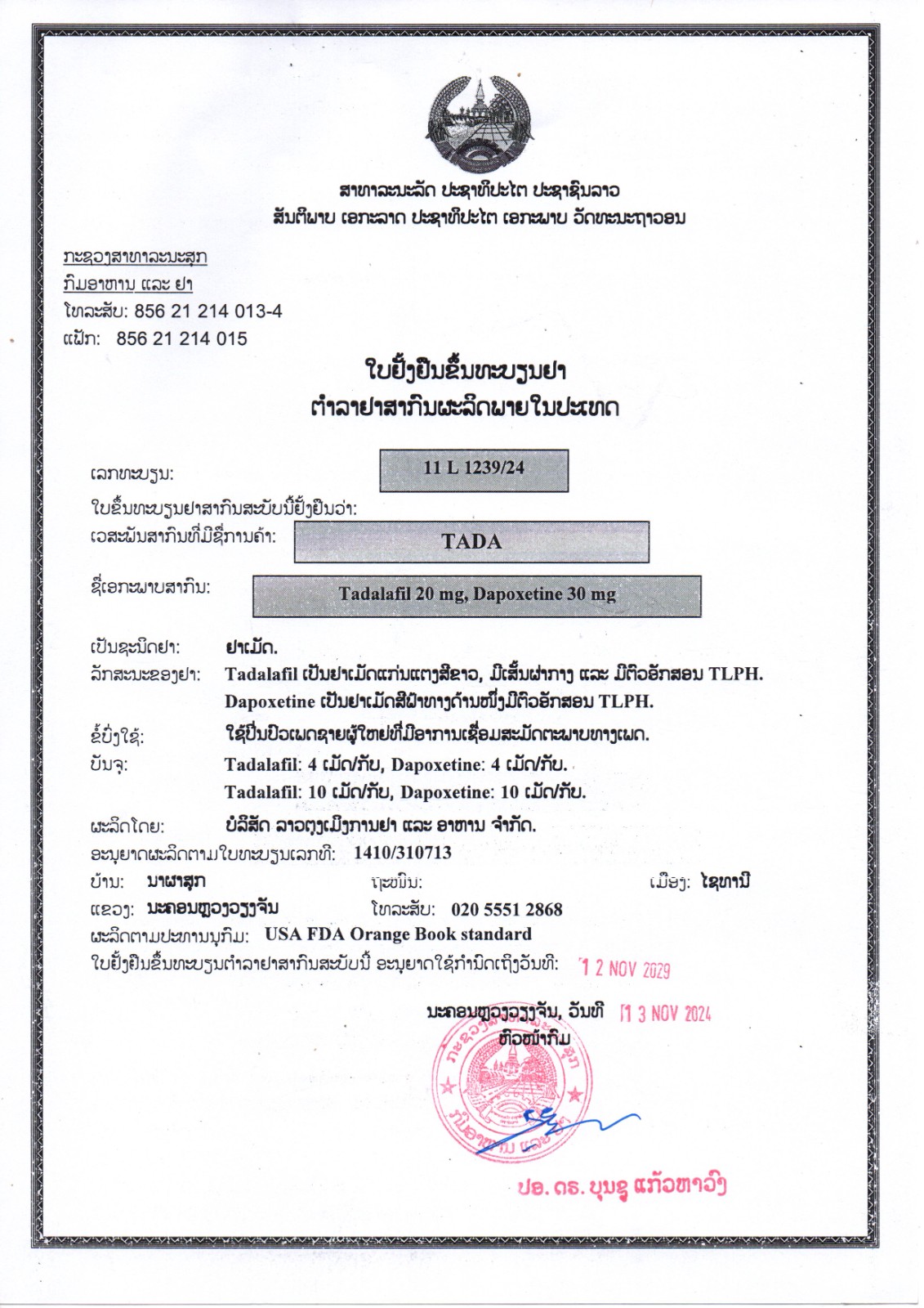 Tada,品名:他达拉非+达泊西汀,通用名:Tadalafil 20mg + Dapoxetine 30mg。